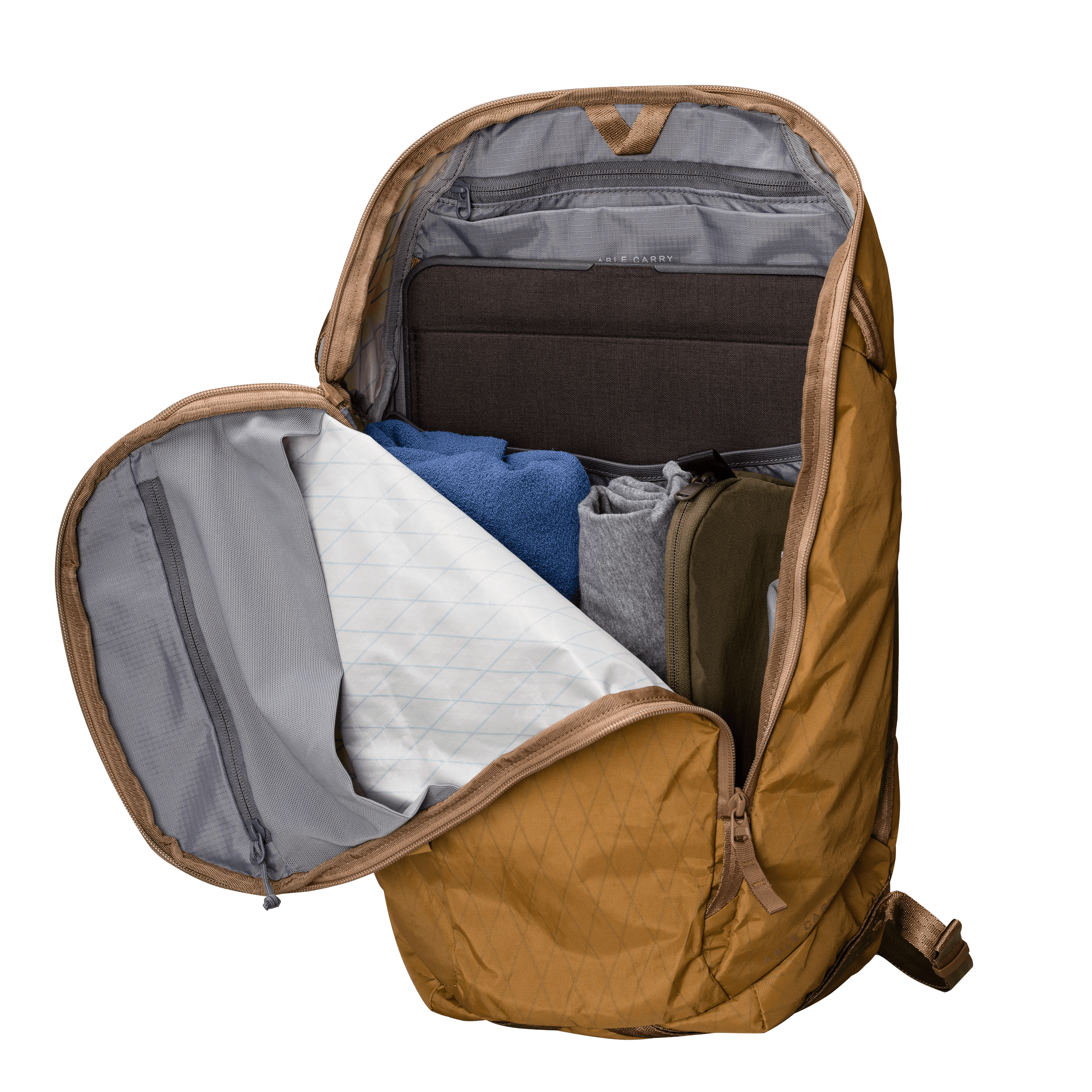 The stretch divider is designed to fit bladders but accommodates laptops up to 40 x 28 x 6 cm. The sleeve is unpadded s a laptop cover is recommended.