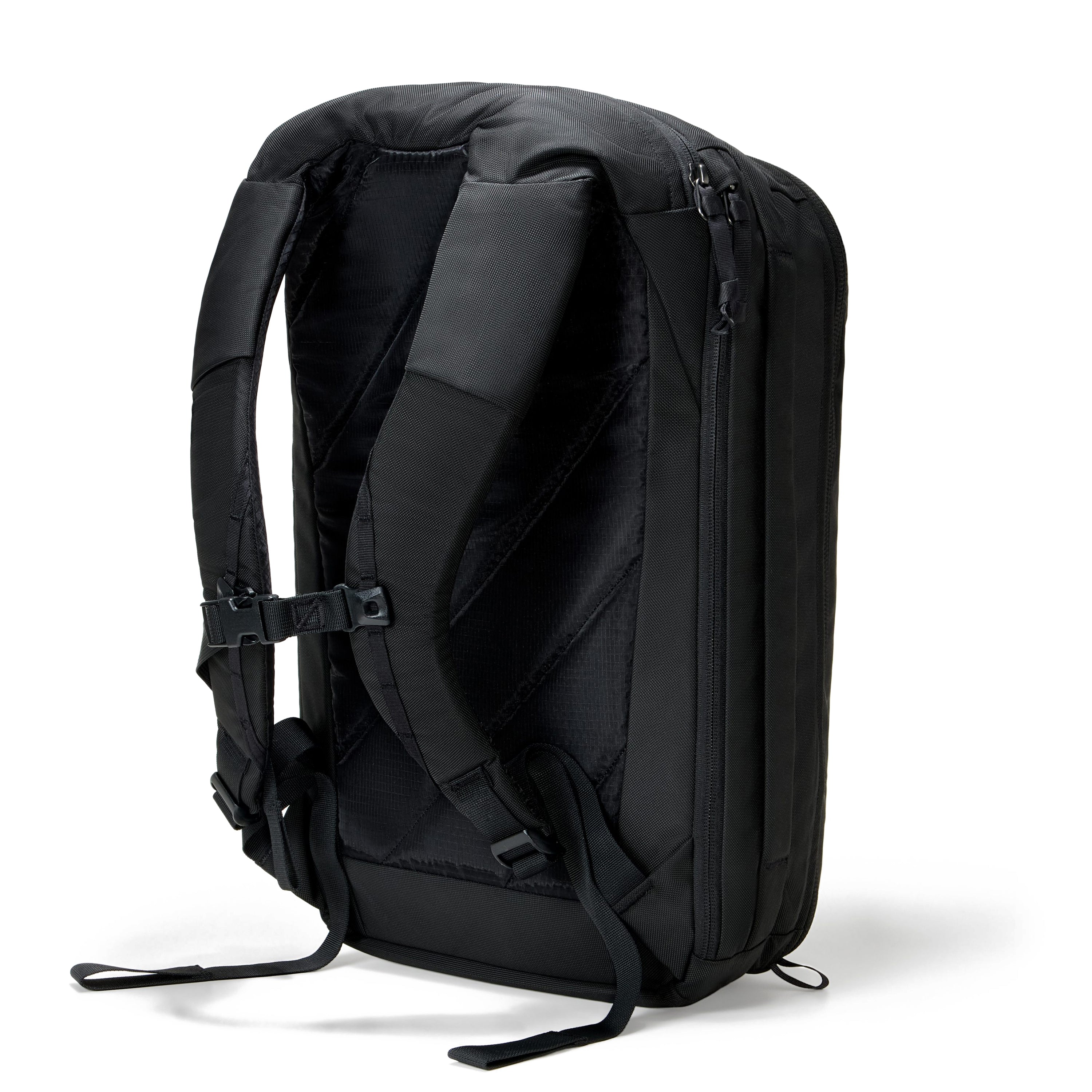 - Padded backpack shoulder straps that tuck away flat